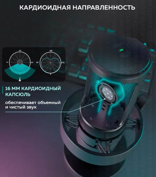 | Доп. опции микрофона | RGB-подсветка; Защита от искажений; Поп-фильтр в комплекте |