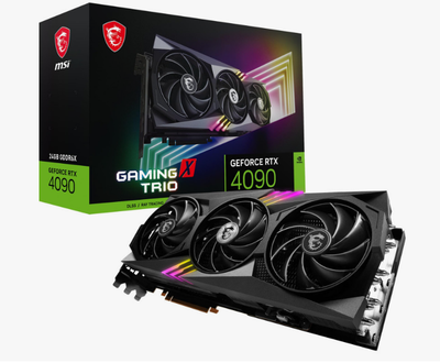MSI RTX 4090 GAMING X TRIO 236 000 KGS В корзину Купить в 1 клик В корзину Купить в 1 клик Видеокарта MSI GeForce RTX 4090 GAMING X TRIO 24GB GDDR6X, 384bit, 3xTORX FAN 5.0, TRI FROZR 3, RGB Lighting, DirectX 12 Ultimate, Vulkan RT API 1.3, OpenGL 4.6, HDMI 2.1a, 3xDisplayPort 1.4a, PCI-Express 4.0 x16 (912-V510-296) Видеокарта MSI GeForce RTX 4090 GAMING X TRIO 24GB GDDR6X, 384bit, 3xTORX FAN 5.0, TRI FROZR 3, RGB Lighting, DirectX 12 Ultimate, Vulkan RT API 1.3, OpenGL 4.6, HDMI 2.1a, 3xDisplayPort 1.4a, PCI-Express 4.0 x16 (912-V510-296) Поделиться