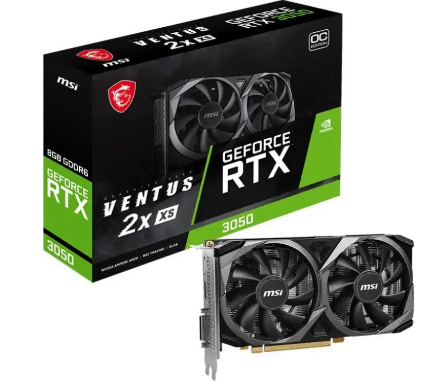 Видеокарта MSI GeForce RTX 3050 VENTUS 2X 6G PCI-e4.0x8. 6GB GDDR6/96 bit. 1492MHz. 1*DP. 2*HDMI. Dual Fan