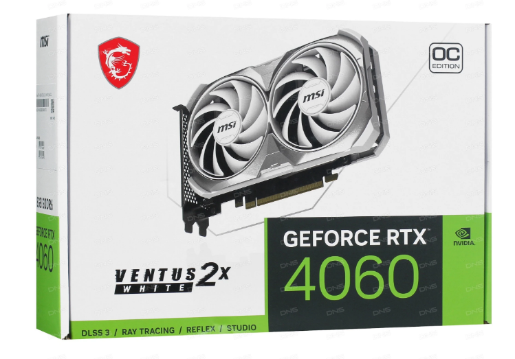 Видеокарта MSI GeForce RTX 4060 VENTUS 2X WHITE 8G OC PCI-e4.0x8. 8GB GDDR6/128 bit. 2505MHz/2490MHz. 3*DP. 1*HDMI. Dual Fan