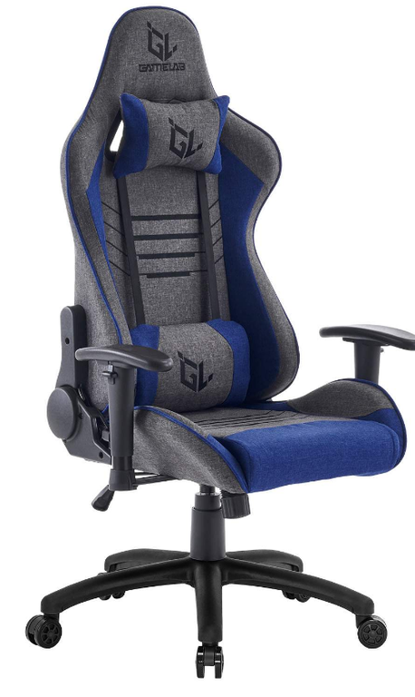 Кресло игровое GAMELAB WARLOCK Breeze Gray GL-732 макс.нагрузка 130 кг,регулировка высоты/наклона/жесткости,ткань/пластик,серый/синий.с подголовником
