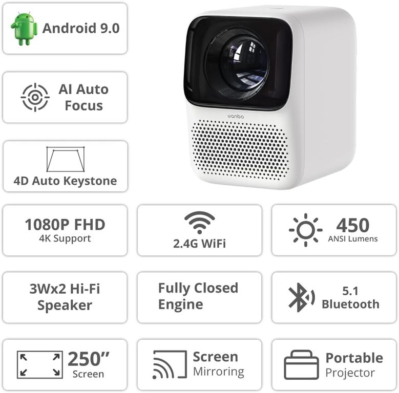 Wanbo T2 Max , многофункциональный портативный проектор , который позволит вам проводить отличные презентации в офисе, наслаждаться потоковым контентом в полной мере и даже вашими локальными файлами. Это мини-проектор на все руки!
