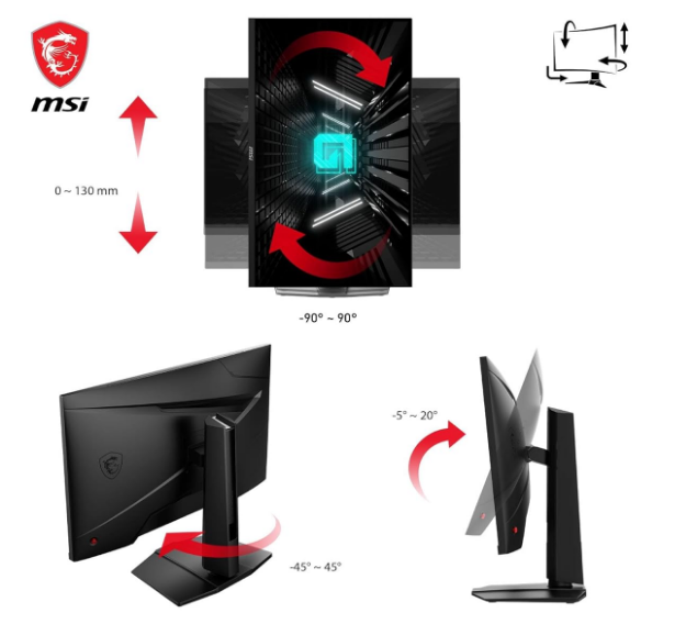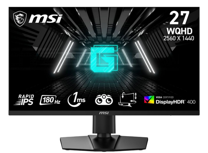 MSI G274QPF E2 27" Flat Gaming Monitor (2560 x 1440), 2K WQHD Rapid IPS, 180Hz, DisplayHDR 400, 3000:1, 400nits, 178/178, 1ms (GtG), Поворот экрана на 90° (портретный режим), Настройка высоты 130 мм; Поворот влево/вправо -30° ~ 30°; Наклон -5~20, Wide Color Gamut, AI Vision Technology, Adaptive-Sync, Flicker Free, Low Blue Light, 1x Display Port, 1x USB Type C, 2x HDMI 2.0b, 1x Headphone out, 1x DC jack, BLACK + DP кабель в комплекте