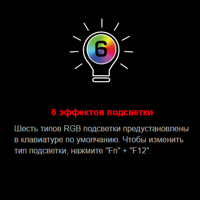 Подсветка: RGB (6 типов RGB подсветки установлены по умолчанию)