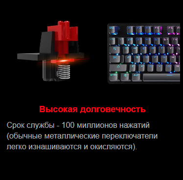 Ресурс клавиш: до 100 млн. нажатий