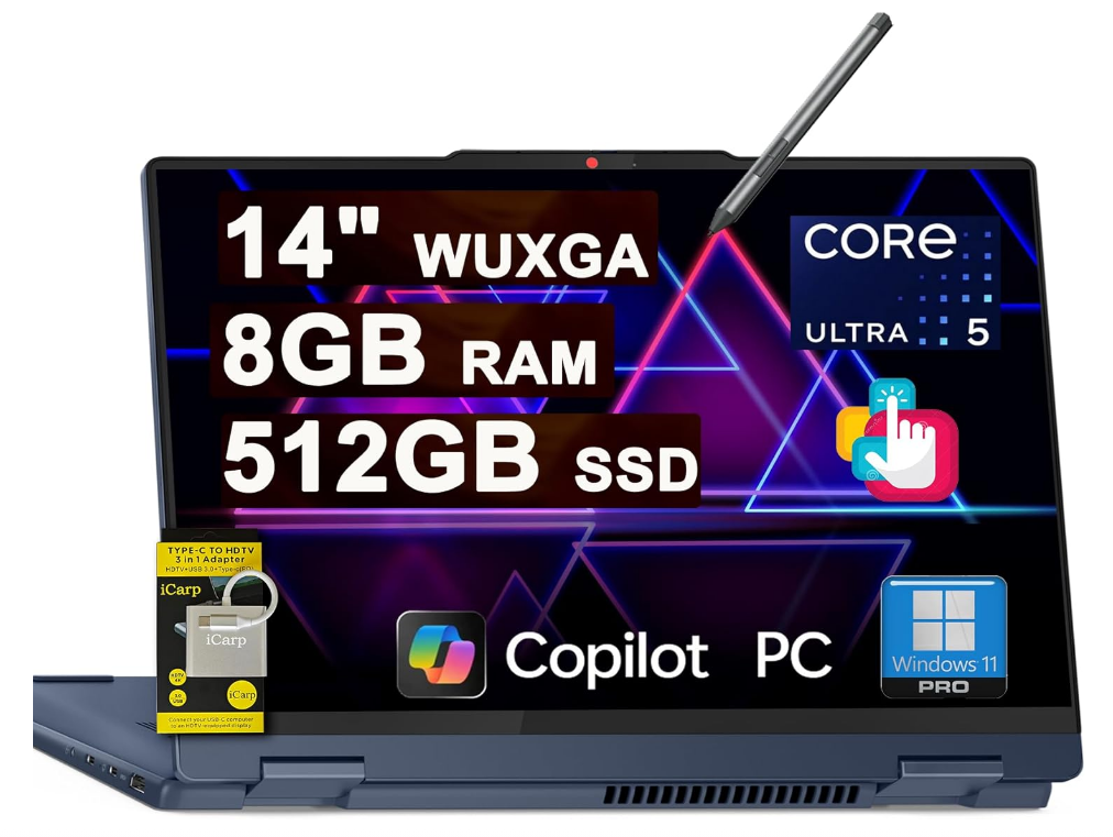 DC Lenovo IdeaPad 5i 2-in-1 14" WUXGA, Intel Core Ultra 5 AI 225U, 8GB Ram, 512 SSD, Luna Grey, Windows 11, Touchscreen, Webcam, Backlit Keyboard, Memory Card Slot, 83KR0047US, ENG\RUS