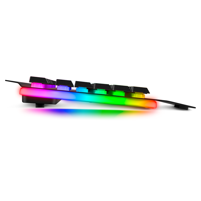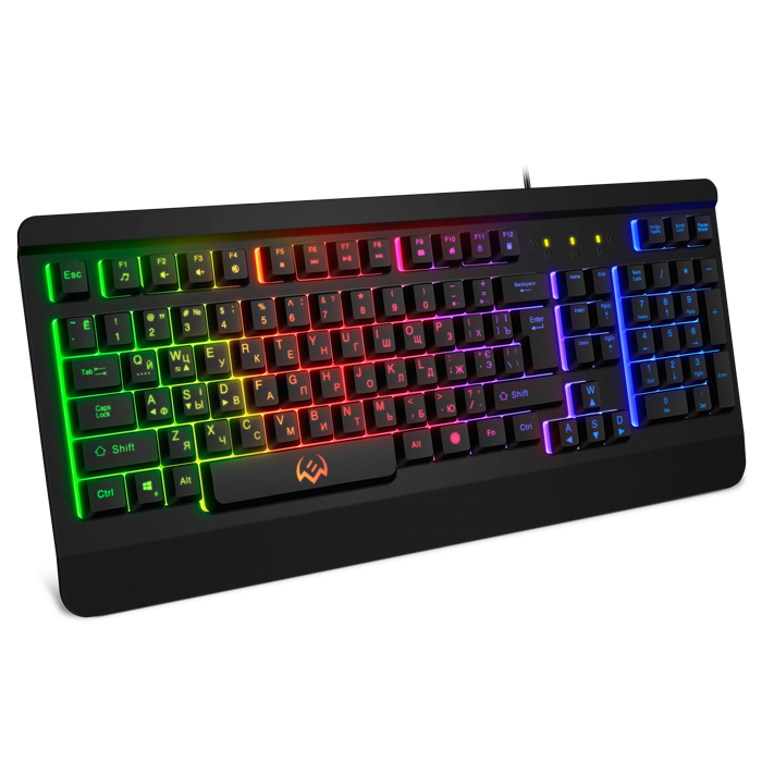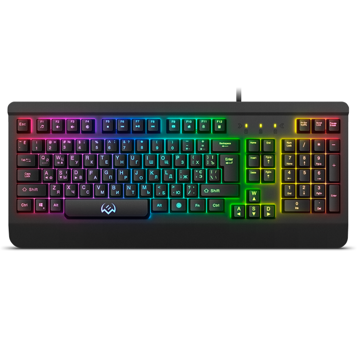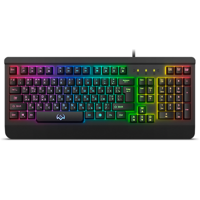 Мембранная игровая клавиатура; количество клавиш 104; интерфейс USB Type-A; длина кабеля 180 см; металлический корпус; RGB подсветка